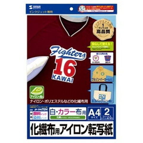 サンワサプライ インクジェット用 化繊布用 アイロンプリント紙(白・カラー・布用) JP-TPRTEN 【返品種別A】