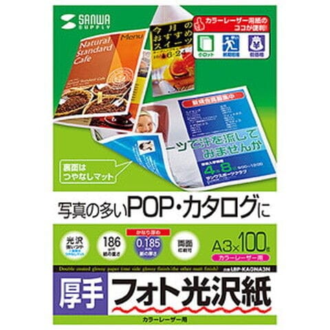サンワサプライ カラーレーザー用 フォト光沢紙 A3(厚手・両面)100シート LBP-KAGNA3N 【返品種別A】