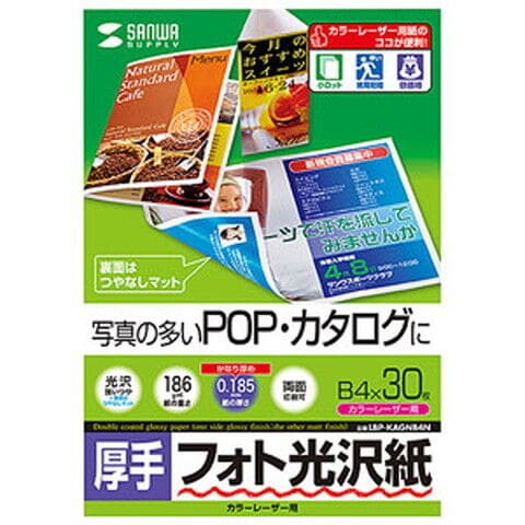 サンワサプライ カラーレーザー用 フォト光沢紙 B4(厚手・両面)30シート LBP-KAGNB4N 【返品種別A】