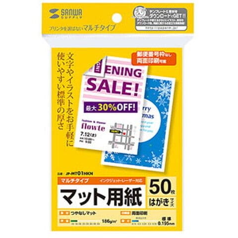 サンワサプライ マルチはがきサイズカード(つやなしマット・標準・両面)50シート JP-MT01HKN 【返品種別A】