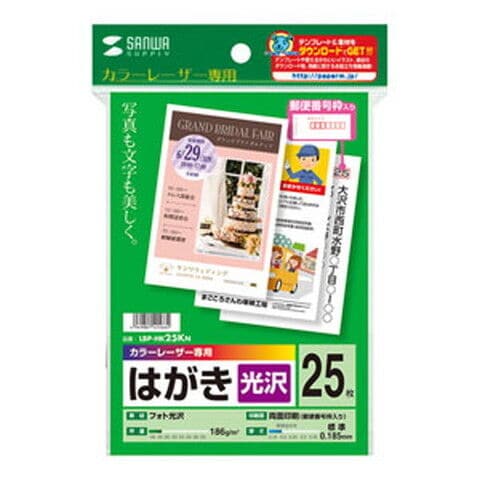 サンワサプライ カラーレーザー用 はがき(フォト光沢・標準・両面)25シート LBP-HK25KN 【返品種別A】