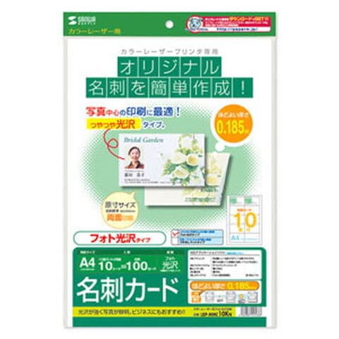 サンワサプライ カラーレーザー用 名刺(フォト光沢・厚手・両面)A4 10面×10シート(100カード) LBP-MMC10KN 【返品種別A】