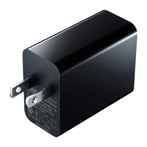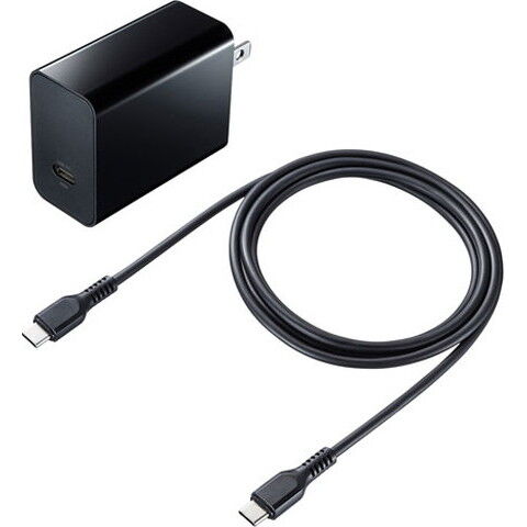 サンワサプライ USB PD対応AC充電器(PD45W・TypeCケーブル付き) ACA-PD80BK 【返品種別A】