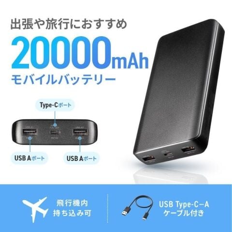 サンワサプライ モバイルバッテリー(20000mAh・ブラック) BTL-RDC41BK 【返品種別A】のレビュー