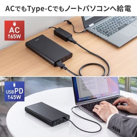 さらにUSB PD最大45W出力対応なので、付属のType-CケーブルでType-C充電対応パソコンへの給電も可能です。
