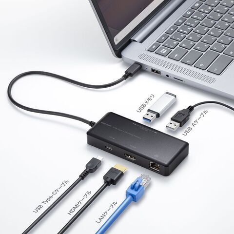 ◆Type-Cケーブル1本でHDMIディスプレイ、USB機器、有線LANの拡張接続ができるUSB Type-Cドッキングステーションです。