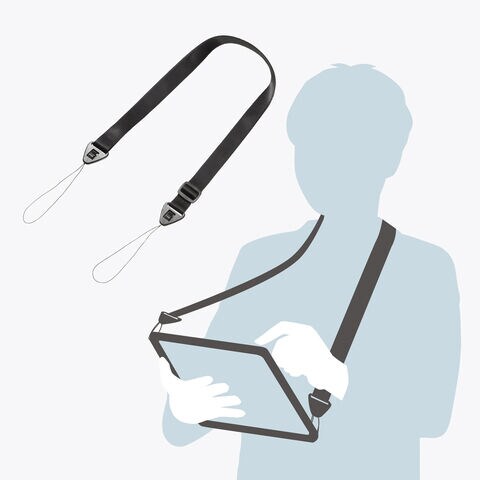 ◆付属のストラップ(73~126cm)を取り付けることで、立ったままでも安定した操作が可能です。ケースの角にストラップホールが付いているので、縦・横どちらの向きでも使用できます。