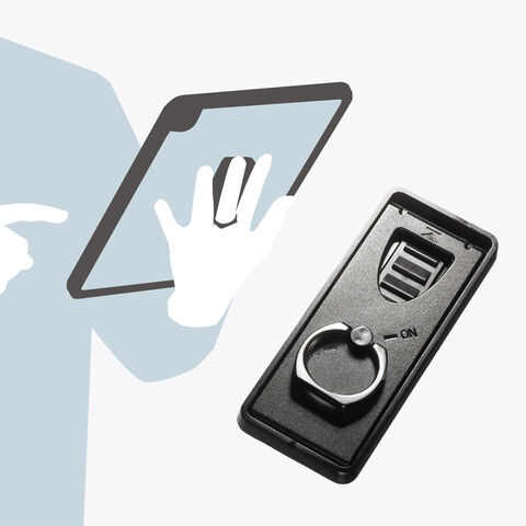 ◆付属のリングスタンドをケース裏面に貼り付け、リングに指を通すことで片手でiPadを持つことができます。片手での操作が安定し、落下防止にもなります。