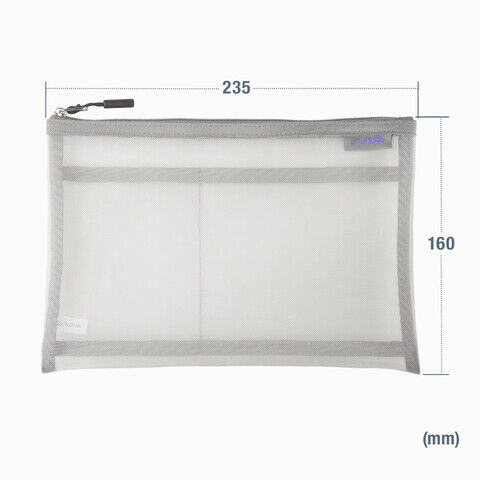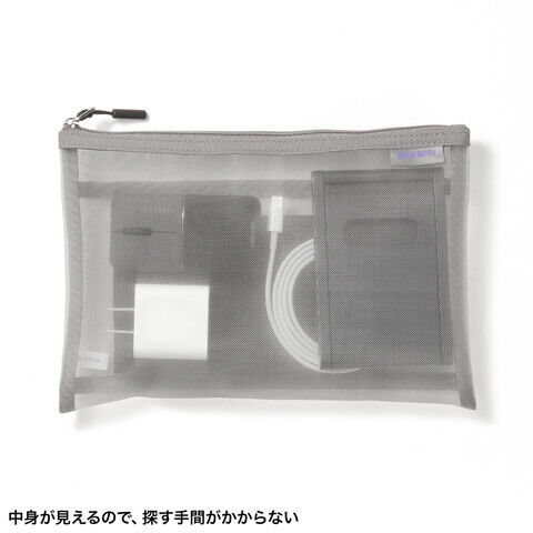 ◆中身が見えるメッシュ生地を採用メッシュ生地を採用したフラットポーチです。