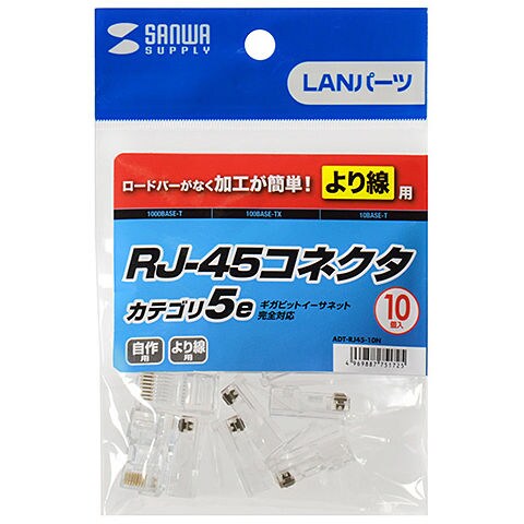 サンワサプライ RJ-45コネクタ(より線用・10個入り)カテゴリ5e適合 ADT-RJ45-10N 【返品種別A】