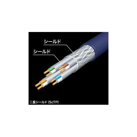 ◆ギガビット以上で通信を行う際、複数本束ねると互いに干渉し、著しく性能が低下して通信エラーが発生します。これを(エイリアンクロストーク(ANEXT))と言います。CAT7A LANケーブルは各4対のペアと外周をそれぞれシールドする(二重シールド)構造のため、複数本束ねた状態での使用が可能になります。