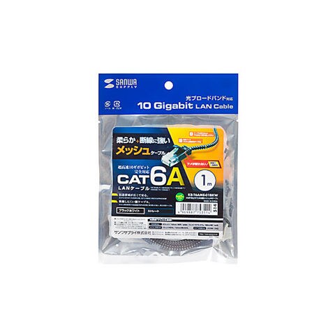 サンワサプライ つめ折れ防止 カテゴリ6A 細径 メッシュLANケーブル 1m(ブラック&ホワイト) KB-T6AME-01BKW 【返品種別A】