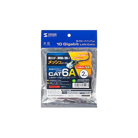 サンワサプライ つめ折れ防止 カテゴリ6A 細径 メッシュLANケーブル 2m(ブラック&レッド) KB-T6AME-02BKR 【返品種別A】