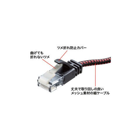 サンワサプライ つめ折れ防止 カテゴリ6A 細径 メッシュLANケーブル 5m(ブラック&レッド) KB-T6AME-05BKR 【返品種別A】