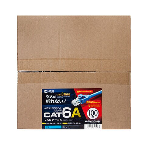 サンワサプライ カテゴリ6A LANケーブル(ブルー・100m) KB-T6ATS-100BL 【返品種別A】