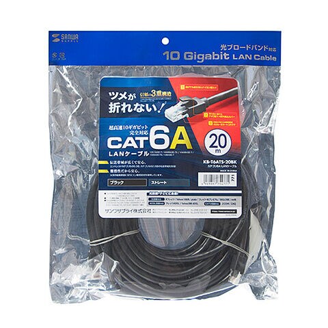 サンワサプライ カテゴリ6A LANケーブル(ブラック・20m) KB-T6ATS-20BK 【返品種別A】
