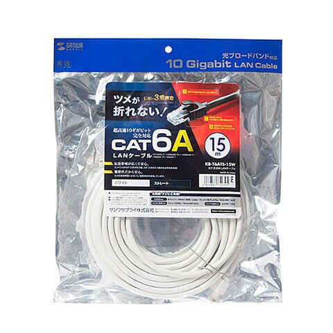 サンワサプライ カテゴリ6A LANケーブル(ホワイト・15m) KB-T6ATS-15W 【返品種別A】