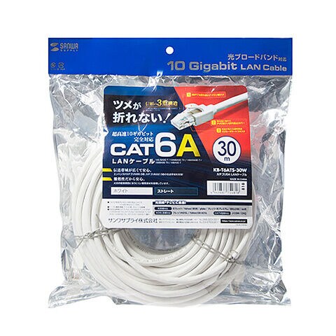 サンワサプライ カテゴリ6A LANケーブル(ホワイト・30m) KB-T6ATS-30W 【返品種別A】