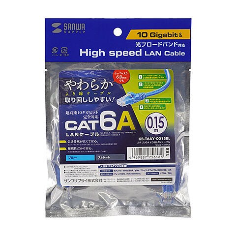 サンワサプライ カテゴリ6Aより線LANケーブル(ブルー・0.15m) KB-T6AY-0015BL 【返品種別A】