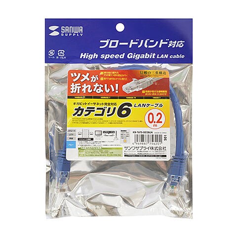 サンワサプライ つめ折れ防止カテゴリ6LANケーブル(ブルー・0.2m) KB-T6TS-002BLN 【返品種別A】