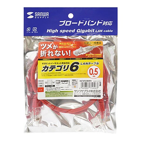 サンワサプライ つめ折れ防止カテゴリ6LANケーブル(レッド・0.5m) KB-T6TS-005RN 【返品種別A】
