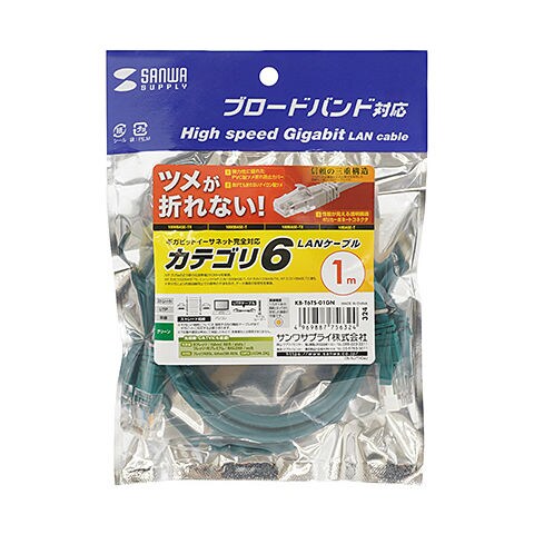 サンワサプライ つめ折れ防止カテゴリ6LANケーブル(グリーン・1m) KB-T6TS-01GN 【返品種別A】