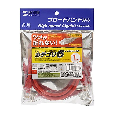 サンワサプライ つめ折れ防止カテゴリ6LANケーブル(レッド・1m) KB-T6TS-01RN 【返品種別A】