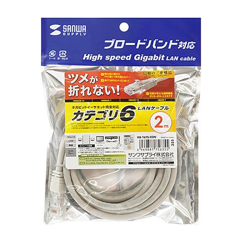 サンワサプライ つめ折れ防止カテゴリ6LANケーブル(ライトグレー・2m) KB-T6TS-02N 【返品種別A】