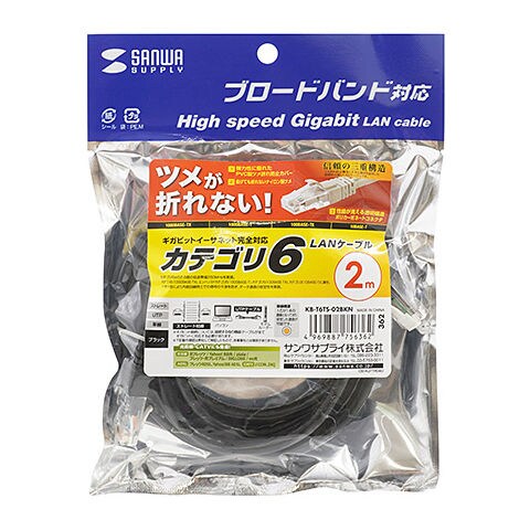 サンワサプライ つめ折れ防止カテゴリ6LANケーブル(ブラック・2m) KB-T6TS-02BKN 【返品種別A】