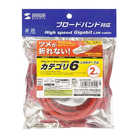 サンワサプライ つめ折れ防止カテゴリ6LANケーブル(レッド・2m) KB-T6TS-02RN 【返品種別A】