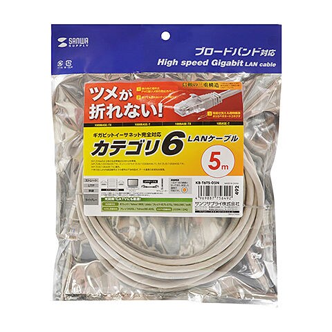 サンワサプライ つめ折れ防止カテゴリ6LANケーブル(ライトグレー・5m) KB-T6TS-05N 【返品種別A】のレビュー