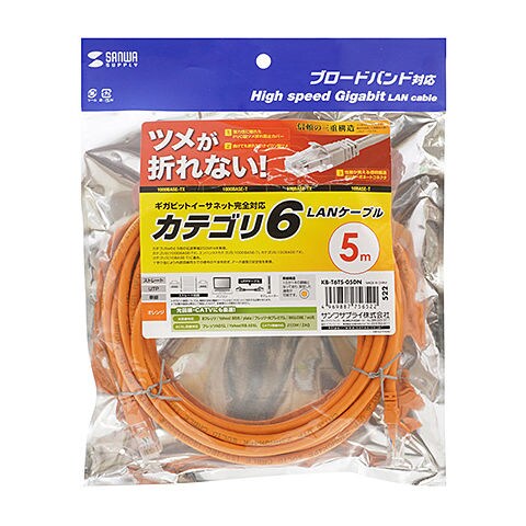 サンワサプライ つめ折れ防止カテゴリ6LANケーブル(オレンジ・5m) KB-T6TS-05DN 【返品種別A】