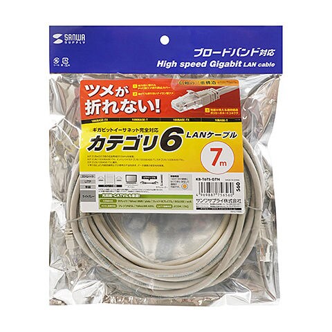 サンワサプライ つめ折れ防止カテゴリ6LANケーブル(ライトグレー・7m) KB-T6TS-07N 【返品種別A】