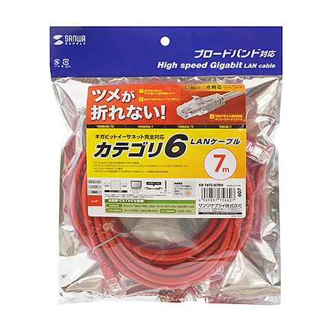 サンワサプライ つめ折れ防止カテゴリ6LANケーブル(レッド・7m) KB-T6TS-07RN 【返品種別A】のレビュー