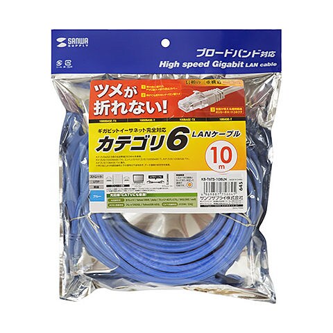 サンワサプライ つめ折れ防止カテゴリ6LANケーブル(ブルー・10m) KB-T6TS-10BLN 【返品種別A】
