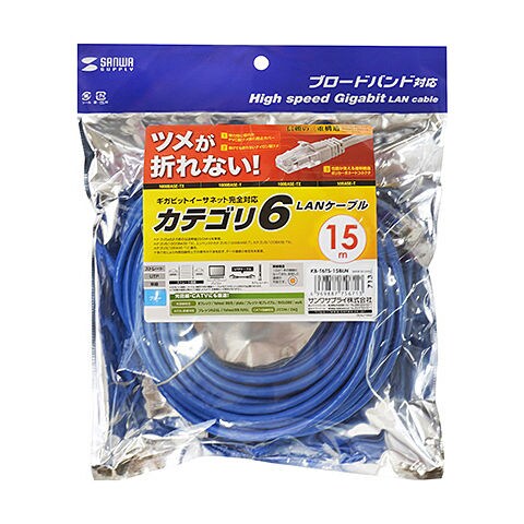 サンワサプライ つめ折れ防止カテゴリ6LANケーブル(ブルー・15m) KB-T6TS-15BLN 【返品種別A】