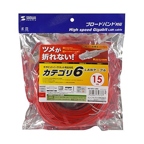 サンワサプライ つめ折れ防止カテゴリ6LANケーブル(レッド・15m) KB-T6TS-15RN 【返品種別A】