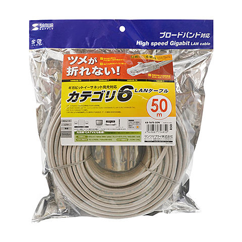 サンワサプライ つめ折れ防止カテゴリ6LANケーブル(ライトグレー・50m) KB-T6TS-50N 【返品種別A】