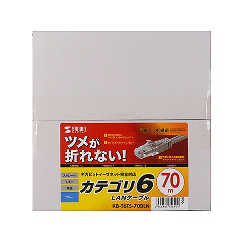サンワサプライ つめ折れ防止カテゴリ6LANケーブル(ブルー・70m) KB-T6TS-70BLN 【返品種別A】
