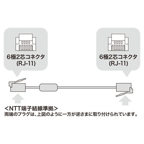 ※NTT端子結線準拠でない6極2芯の機器は使用できません。 - コネクタ:RJ11モジュラープラグ-RJ11モジュラープラグ
