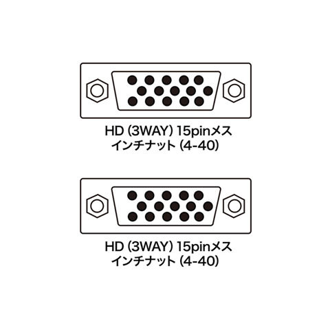 - コネクタ形状:ミニD-sub(HD/3way)15pinメス インチナット(4-40)-ミニD-sub(HD/3way)15pinメス インチナット(4-40)