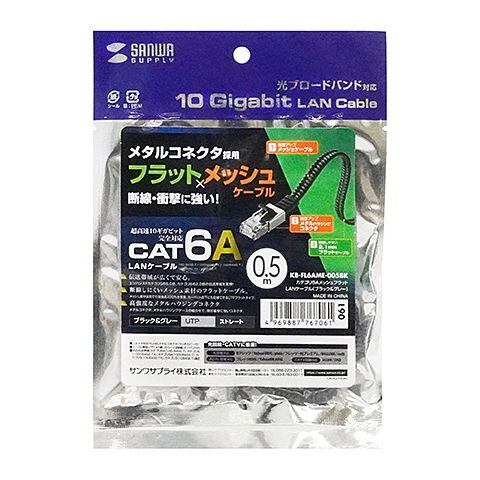 サンワサプライ カテゴリ6AメッシュフラットLANケーブル(ブラック&グレー・0.5m) KB-FL6AME-005BK 【返品種別A】
