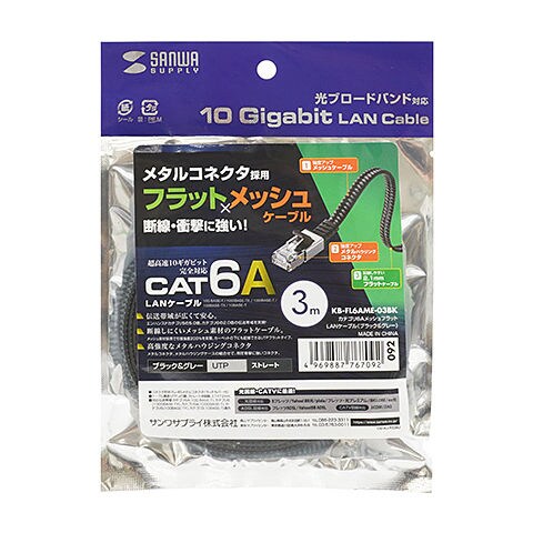 サンワサプライ カテゴリ6AメッシュフラットLANケーブル(ブラック&グレー・3m) KB-FL6AME-03BK 【返品種別A】