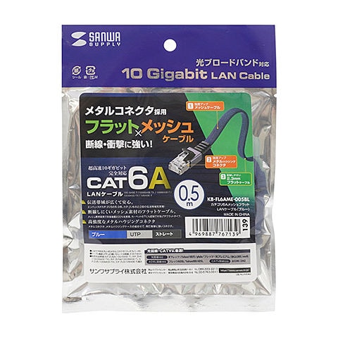 サンワサプライ カテゴリ6AメッシュフラットLANケーブル(ブルー・0.5m) KB-FL6AME-005BL 【返品種別A】