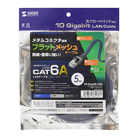 サンワサプライ カテゴリ6AメッシュフラットLANケーブル(ブルー・5m) KB-FL6AME-05BL 【返品種別A】