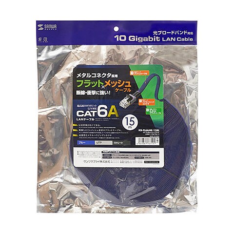 サンワサプライ カテゴリ6AメッシュフラットLANケーブル(ブルー・15m) KB-FL6AME-15BL 【返品種別A】