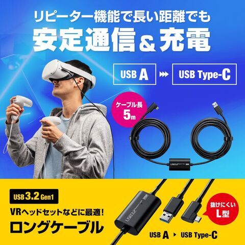 サンワサプライ USB3.2 A-TypeCロングケーブル(5m・VRヘッドセット対応) KB-USB-RLC305 【返品種別A】