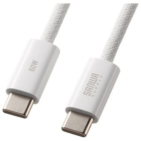 サンワサプライ Type-Cシリコンメッシュケーブル USB C to C PD60W対応 (2m・ホワイト) KU-CCP60SM20W 【返品種別A】