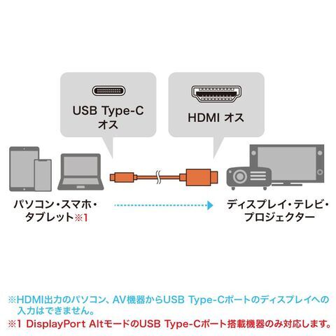 - コネクタ:USB Type-Cオス‐HDMI(HDMIタイプA)オス