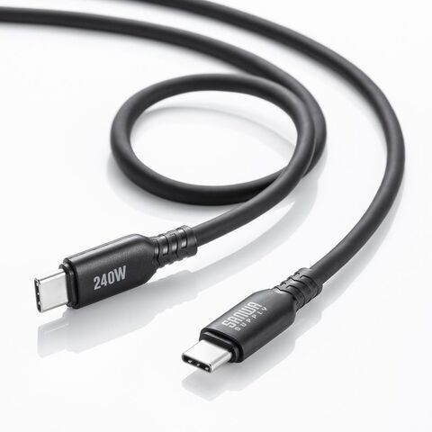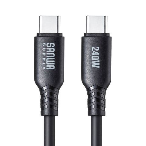 サンワサプライ USB2.0 Type-C シリコンケーブル(PD240W・1m・ブラック) KU-CCPES10BK 【返品種別A】
